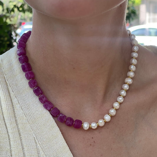 Half & Half Pink Pearl Necklace